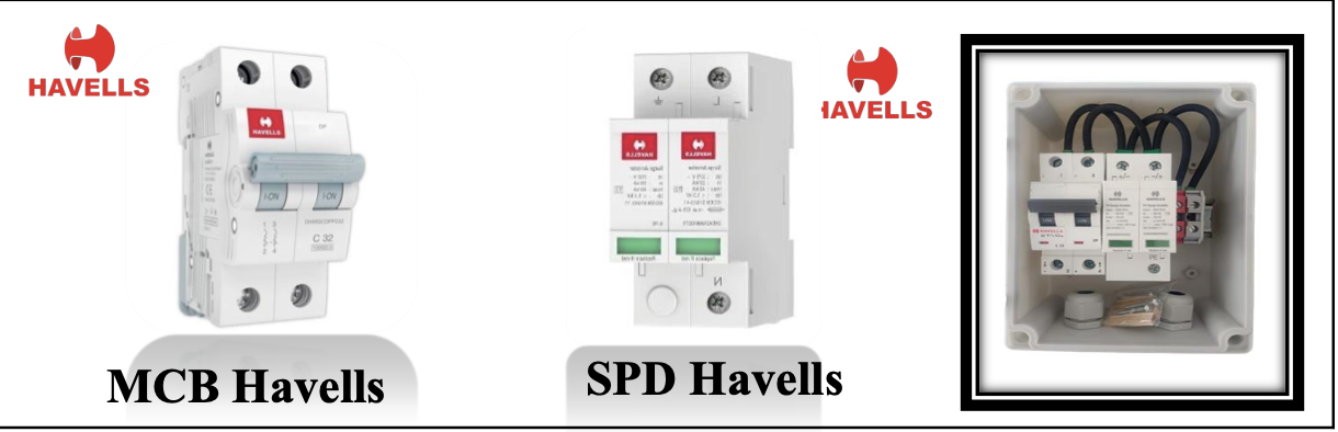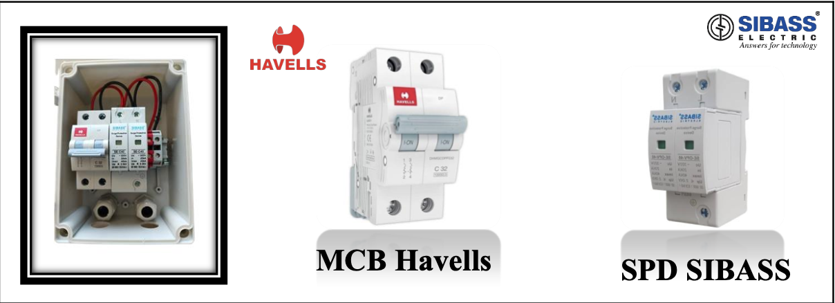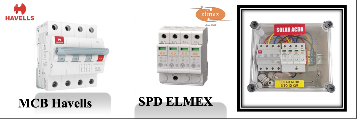 ACDB 1 KW-6 KW (1 Phase) Havells MCB Elmex SPD with Premium Box, Solar ACDB 6 TO 10 KW Havells (MCB) Elmex (SPD) 3 Phase, Solar ACDB BOX 1-6 KW Havells (MCB) Sibass (SPD) 1 Phase, Solar ACDB BOX 1-6 KW Havells (MCB) Havells (SPD) 1 Phase, Solar ACDB BOX 1-6 KW Havells (MCB) Sibass (SPD) with Indicator 1 Phase, Solar ACDB BOX 10-18 KW L&K (MCB) Elmex (SPD) with NVR Indicator 3 Phase